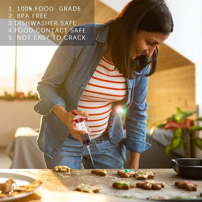 The syringe allows you to evenly distribute marinades deep into the meat.